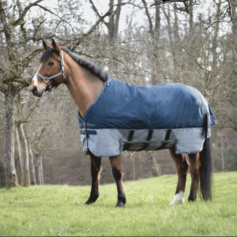 Equithème - Couverture d'extérieur Tyrex "Belly Belt" 600D marine/gris 0g