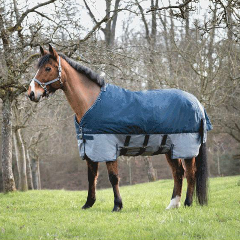 Equithème - Couverture d'extérieur Tyrex "Belly Belt" 600D marine/gris 300g