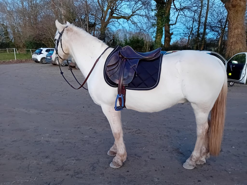 - Armature mono branche en acier ressort augmentant le confort du cavalier à cheval
